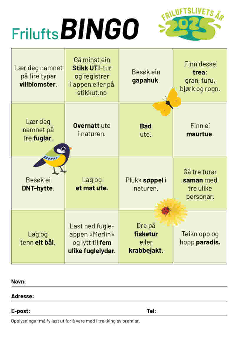 - Bli med på Friluftsbingo i haust!